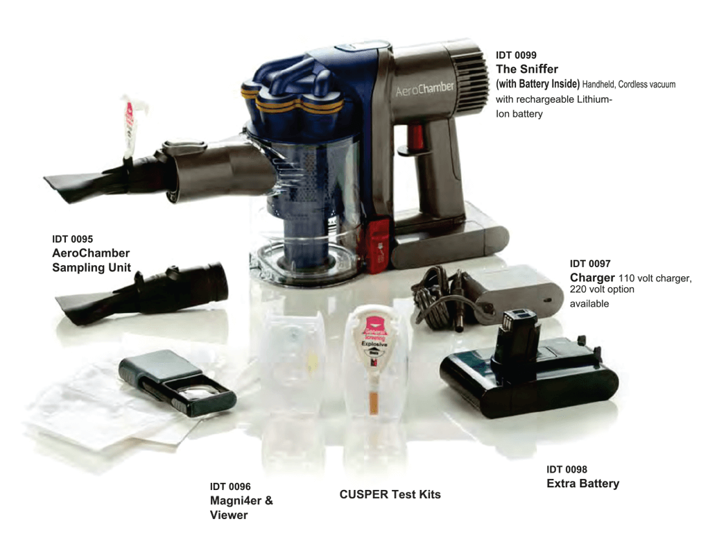 Introducing IDenta's latest innovation : Handy Sniffer/Aero Chamber a first of a kind sniffer with the ability to carry out both drug and explosive screening and detection missions in a fast, effective and reliable manner. We have added a new type of probe to our CUSPER test kits which is designed for use with out AeroChamber, giving users the ability to screen and detect even the smallest traces of substances on any type of surface or object, and offering a very safe, practical and effective solution for screening people.