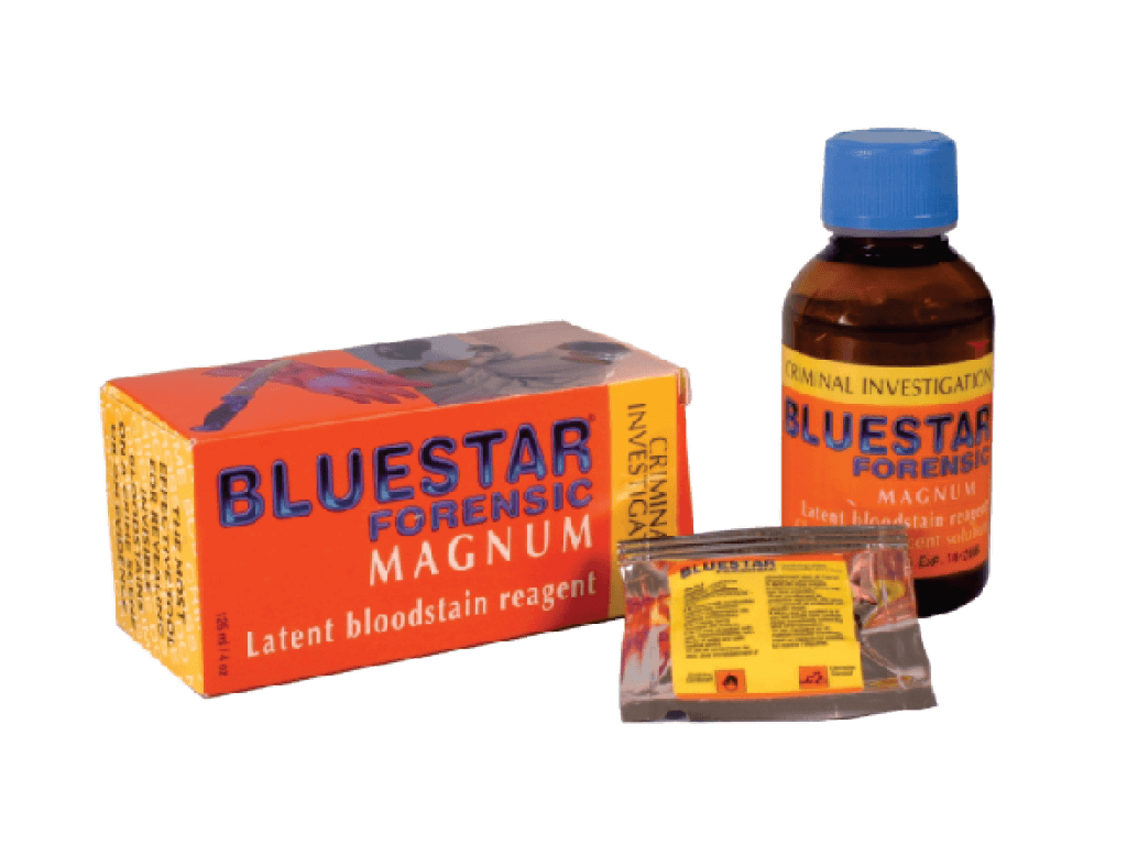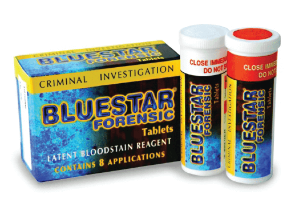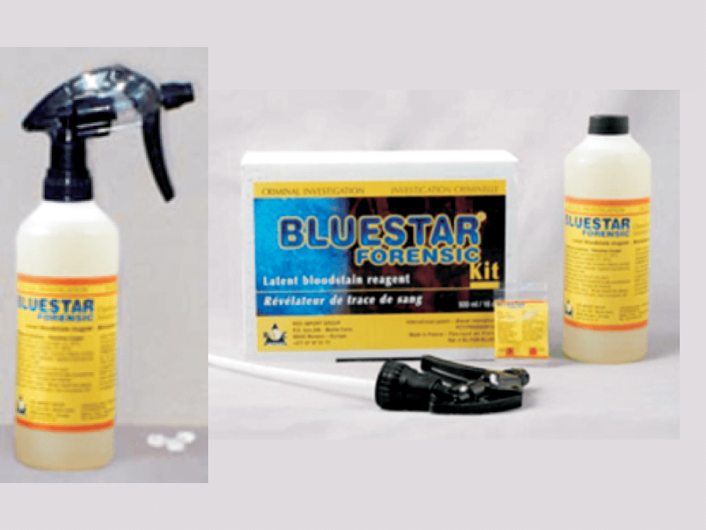 BLUESTAR FORENSIC is a new reagent that luminesces bloodstains that have been washed, wiped off, altered, diluted or that are otherwise invisible to the naked eye.