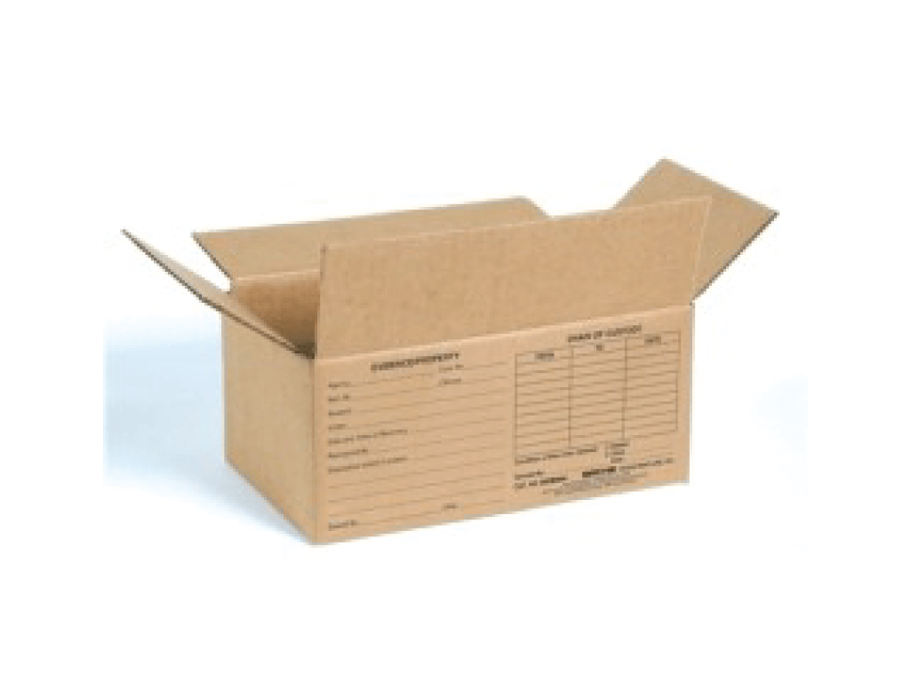 Corrugated Evidence Packing Boxes printed with a write-on area with a chain of custody section.