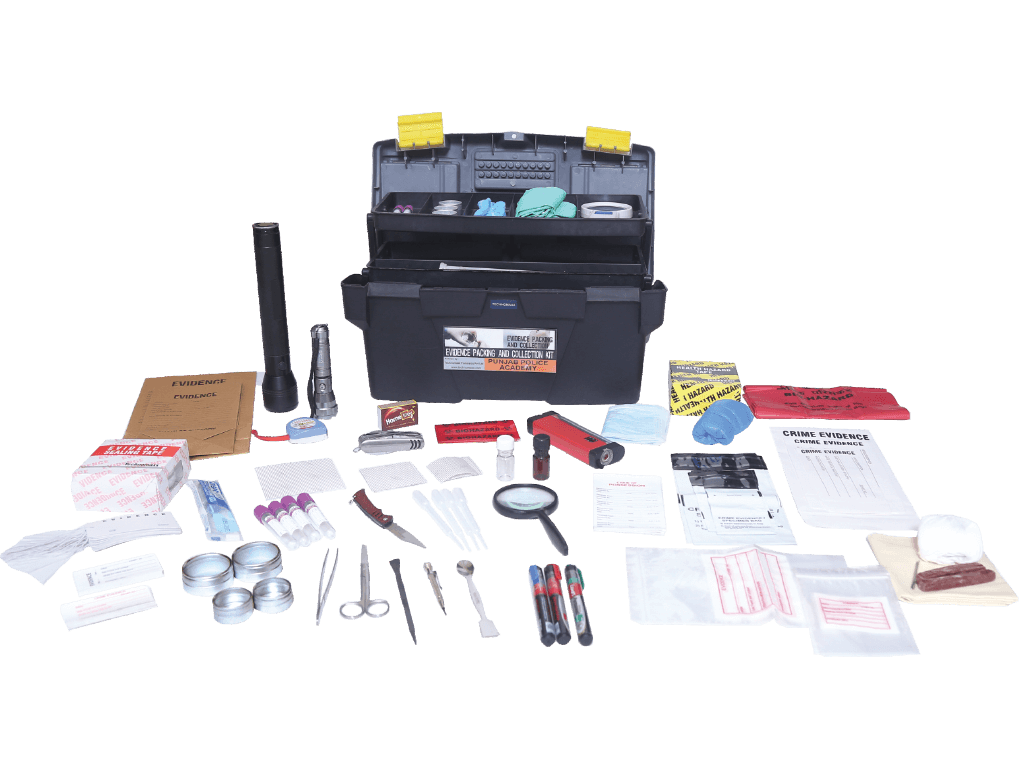 This kit is excellent kit for crime scene search officers because the contents permit preliminary search with ultraviolet light for locating evidence such as fibers and stains. The kit includes all the necessary gears for collecting, marking and preserving all types of physical evidence. Instructions and procedures booklet included.