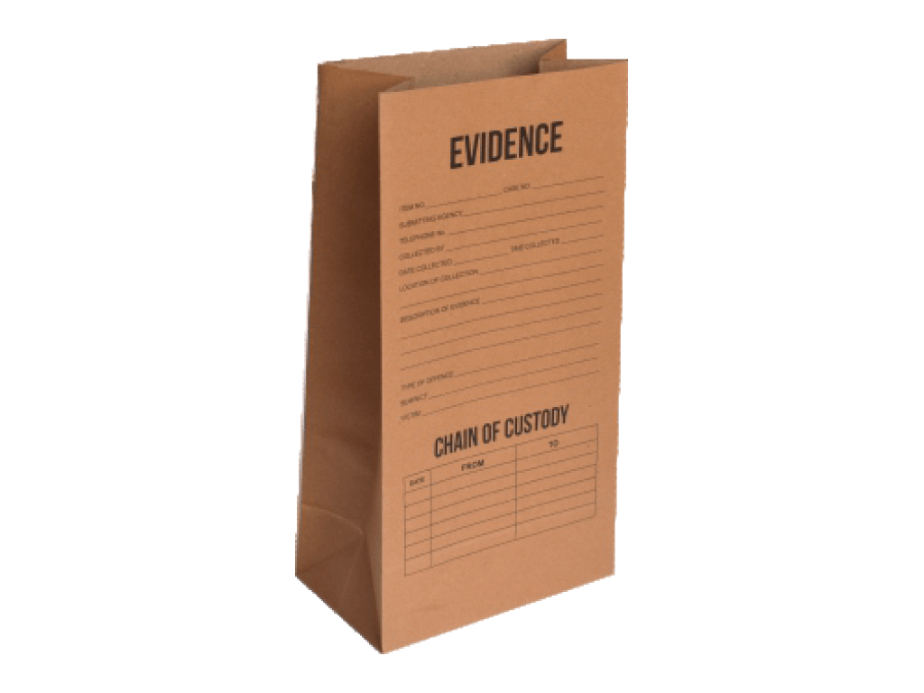 Kraft Bag printed with a write-on area with a chain of custody section.