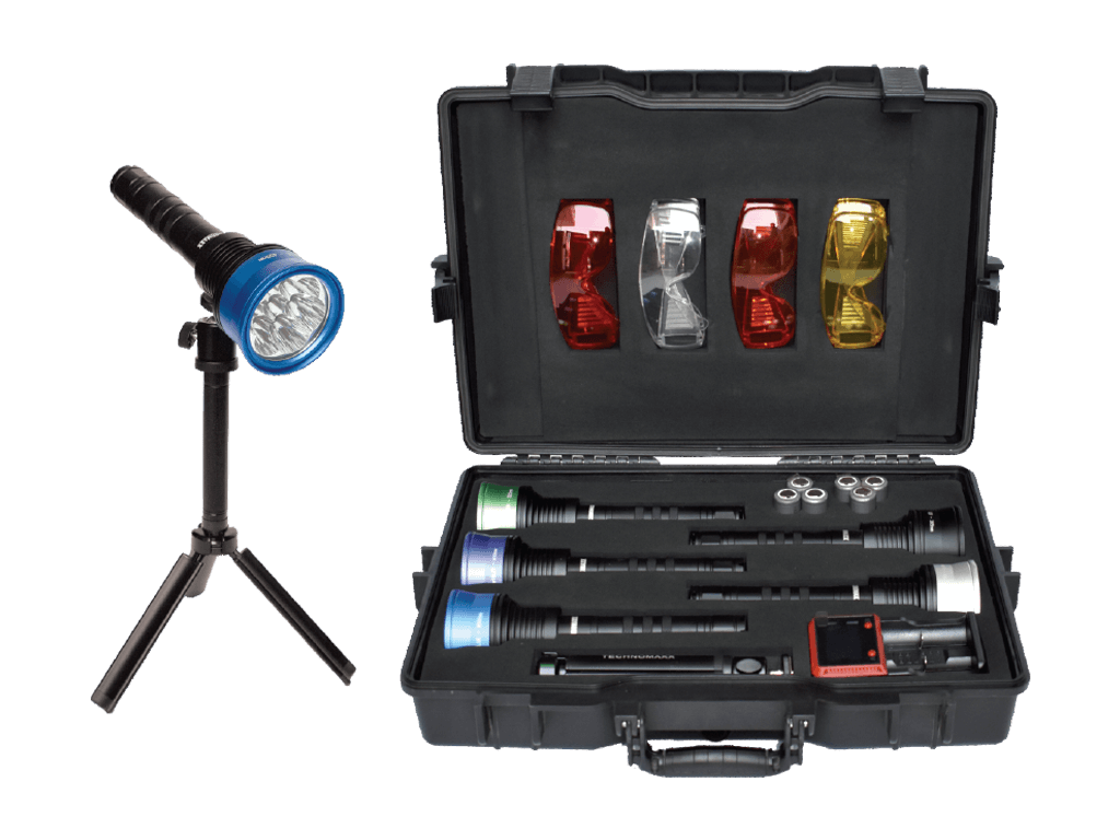 Techno Violet, Blue, White LED Torch, Amber, Orange, Transparent Goggle, 3 Li-ion Batteries & Charger, Techno Carrying Case