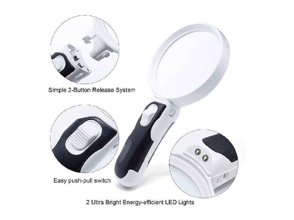 This professional multi magnification magnifier is an excellent aid for examining evidence. An ON/OFF switch is provided for the battery-supplied illumination