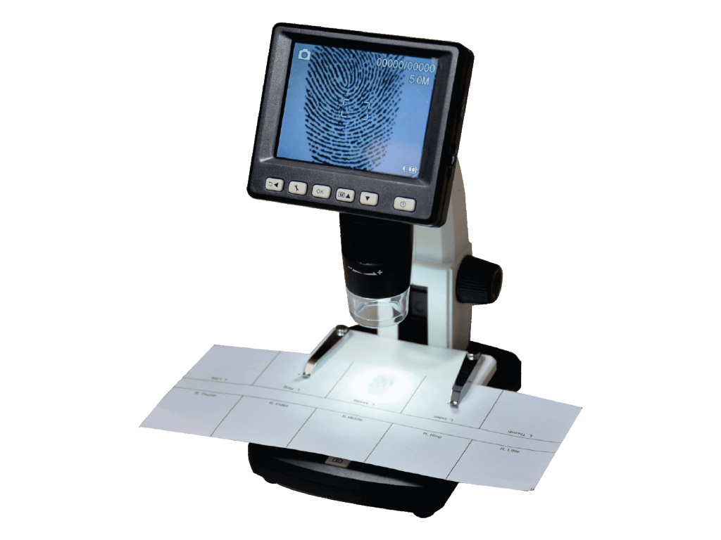 Digital Magnifier is a variation of traditional optical microscope that uses optics and a digital camera to output an image to a monitor. This digital magnifier has its own in built LED light source, designed to use with a computer / laptop. Digital magnifier is perfect for latent print examination, allowing the examiner to review prints without having to bend over the magnifier, can be used at a crime scene or in the lab.