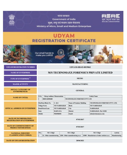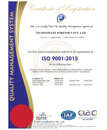 Technomaxx manufactures and compiles fingerprint, forensic and crime scene investigation products. We are serving various law enforcement agencies in India. In addition to a wide variety of kits to choose, our kits can be customized to fit any department’s needs.